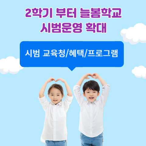 늘봄 학교는 정규 수업이 끝난 후 초등학생들을 대상으로 아이들을 돌봄 공간으로 안심하고 맡길 수 있는 학교 내의 공간과 인적, 물적 자원을 활용하여 통합 서비스를 제공합니다.