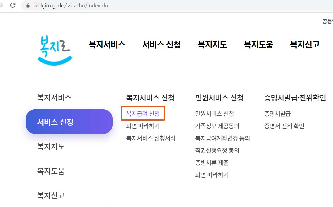 3) 복지로 신청 홈페이지 신청 방법
